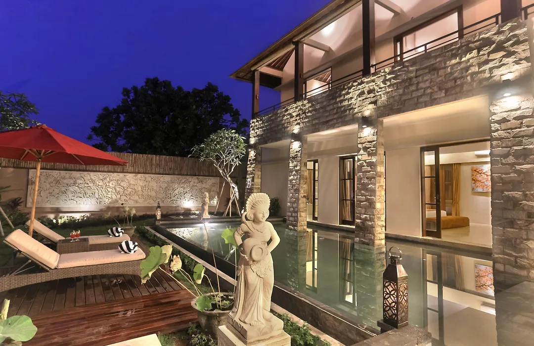 Nestled in the Kuta Utara district, nearly 25 minutes' walk from the Splash Waterpark Bali, the 4-star luxury Villa Kumuda By Nakula Kuta hotel features a swimming pool and views of the pool. Staying active is easy with a golf playground available for guests at this Kuta hotel.